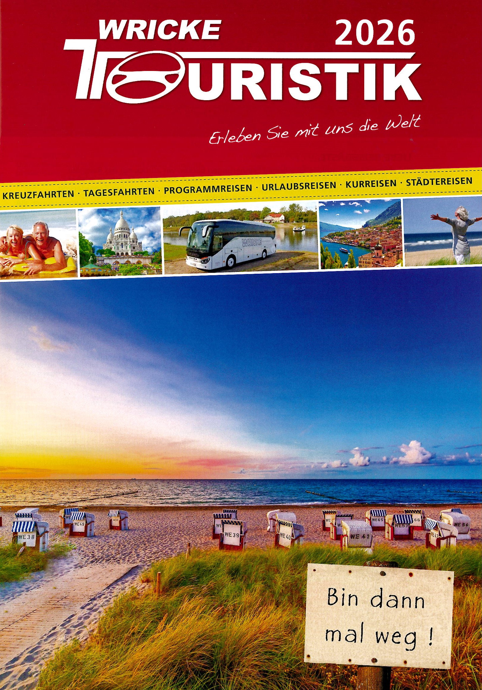 Kein Problem. Direkt online und kostenlos können Sie den aktuellen Wricke Touristik Katalog bestellen. In wenigen Tagen halten Sie unseren Katalog in Ihren Händen und können gleich in unserem Angebot stöbern.