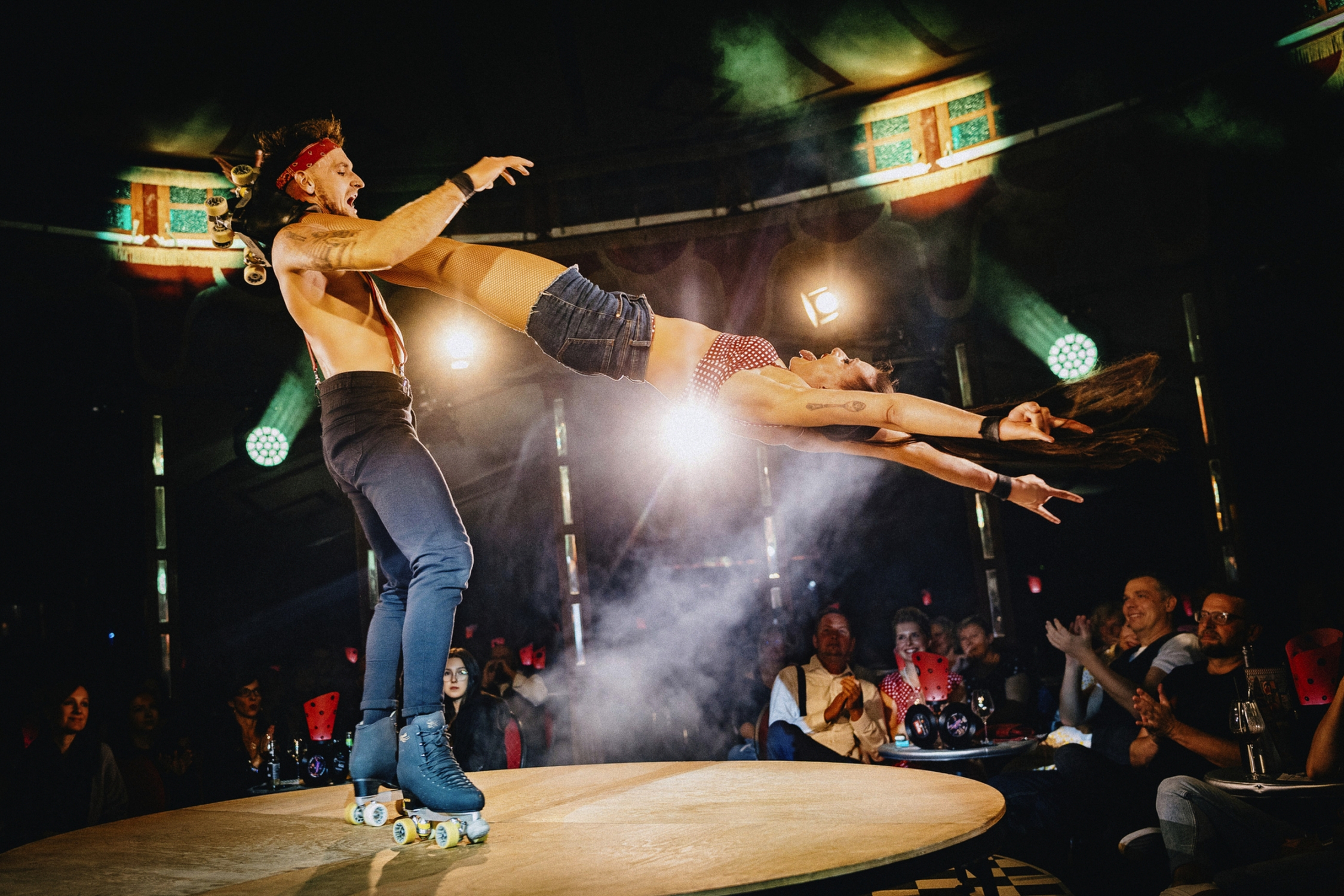 Erleben Sie eine mitreißende Zeitreise zurück in die 1950er-Jahre – mit Haartolle, Petticoat und kreisenden Hüften. Eine energiegeladene Rock’n’Roll-Band bringt den Saal zum Beben, während getanzt, gefeiert und ausgelassen mitgesungen wird. Die fabelhaften Artisten präsentieren ihre Darbietungen ganz im Stil der Zeit und lassen die großen Hits der Fünfziger wieder aufleben.